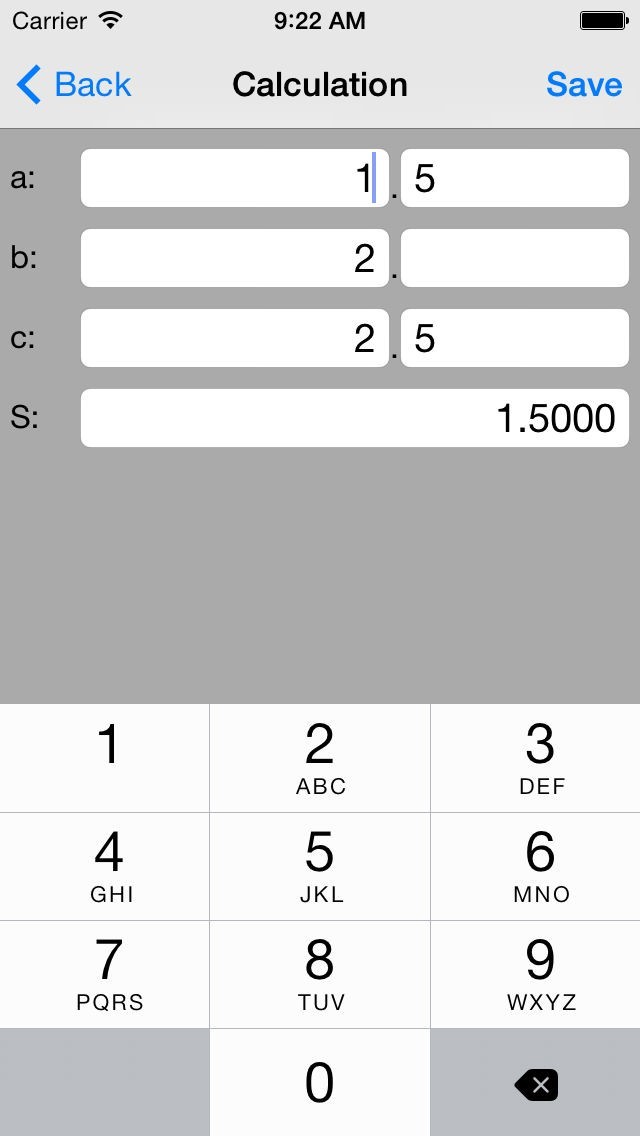 三辺で面積計算(ヘロンの公式)Triangle Sのスクリーンショット