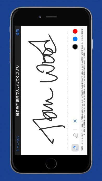 タッチパネルを介して直筆のサインを書き加えることが可能