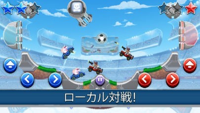 App Storeより引用Drive Ahead! Sportsは車を使ったスポーツだ!車でサッカーしよう!同じ端末で友だちと遊ぼう!シングルプレイでスキルを磨こう!モトクロスのバイクやモンスタートラックなどの車でドライブしよう!スポーツをマスターし、キャラクターをアップグレードしてパワーアップだ!