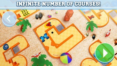 The game features an endless number of tracks you can practice in single player mode. For even more fun, challenge your friends to play matches on the one and same device. You can save your favorite courses to play them again.