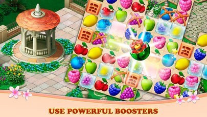 - おいしそうなフルーツいっぱいの数百種類におよぶマッチ3パズルを解いて家族のお庭を復元!