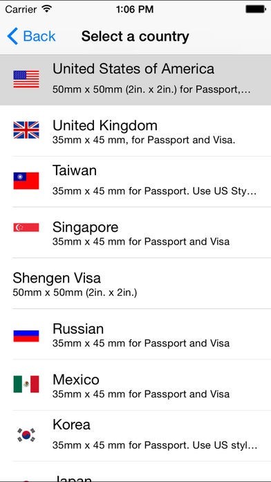 Passport (Visa/Immigration) photos from following countries/areas are supported.