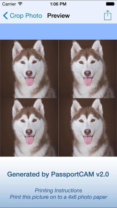 8) Once the passport photo is in your local iOS album, you can use other photo print apps to print the photo onto 4"x6" photo paper.