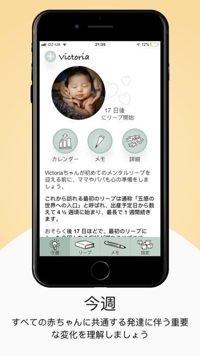 赤ちゃんがぐずり始める「メンタルリープ」や、精神の発達による「行動の変化」など、赤ちゃんのあらゆる変化を見逃しません。特に初めてお子さんを授かった方にはおすすめです。