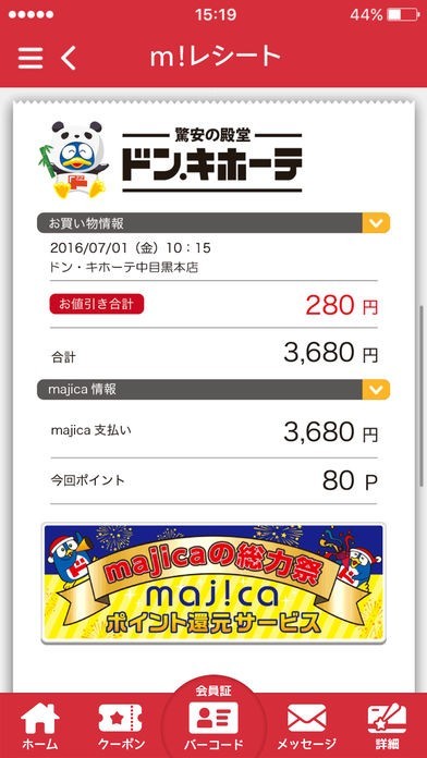 majicaカード画面機能を搭載!ドン・キホーテ店頭で表示すれば電子マネーとして利用可能!
