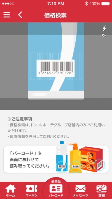 価格検索機能を搭載しています。アプリからカメラを起動して商品のバーコードをスキャンするだけで、価格表示が可能。よりお得な商品を店内で探したい時にも活躍してくれます。