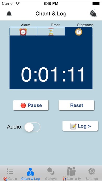 決まった時間にお題目を唱える場合、タイマーとアラームを設定しておけば安心です。また課金要素としてオーディオ機能を搭載しているのでそれに合わせて唱えることもできます。