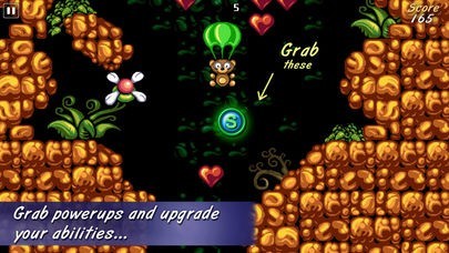 Jump down the rocky caves of Fuzzy Land and aim for the fluffy pillow at the bottom of each cave, all while collecting hearts and trying not to snap the chute.