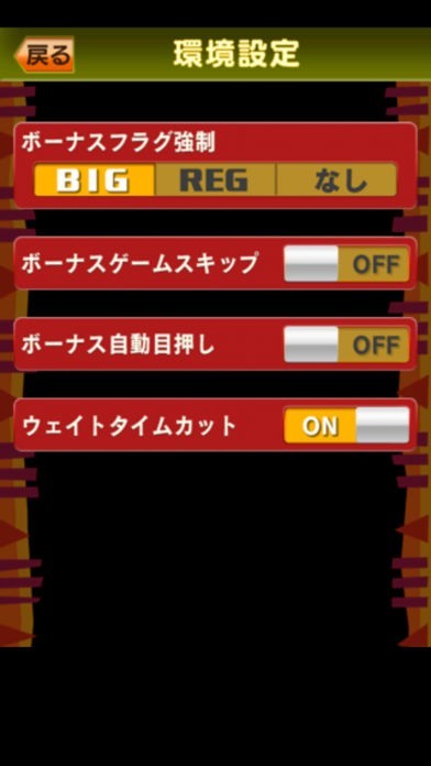 設定1~6が自由に選択出来るほか、爆弾マークを選択すれば脅威のボーナス連チャンが体験できます。実際のホールなどでなかなか当たってくれないストレスが発散できて楽しいです。