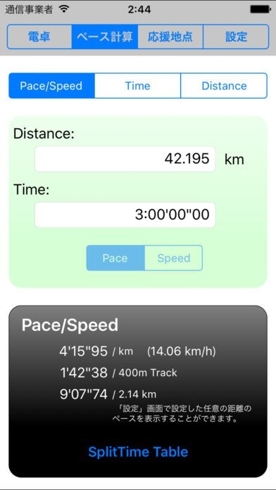 ・ペース計算画面で、ユーザーが設定した任意の距離に対するペースを表示するようにしました。
