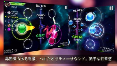 一人でも、オンライン上の他のユーザーとのバトルを通して競争するリズムゲームです。