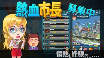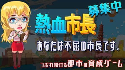 市長となって、美人秘書と共に都市を開発して大きくしていく「熱血市長」 タップをすることでお金が得られ、そのお金で商業施設や道路を整備することで得られるお金が増えるといったクリッカー&都市育成ゲームです。 少しずつ都市が大きくなっていけば、様々な演出も増えていき達成感が得られます。 ですが、本ゲームでは何の前触れもなく育てた都市が潰れてしまうため、いつその時が来るのかといったスリルも味わえます。 潰れてしまうと残念ではありますが一部は引き継ぐことが可能で、それまでのノウハウから前よりも早く都市を発展させることが出来ます。 何度潰れても諦めない不屈の精神をもった市長となって都市を救うゲームとなっています。
