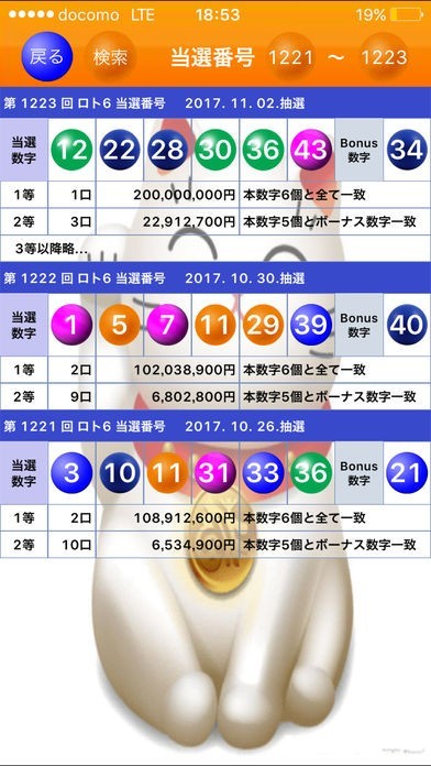 ロト6宝くじの集計データをてのひらで、すばやく確認できる