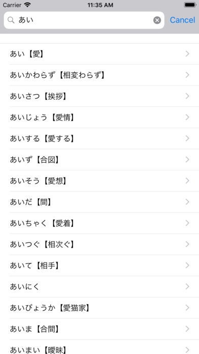 それぞれは、日本語から調べることが出来ますが、単語についてくる例文がとても分かりやすく学習しやすくなっています。特に初心者にとっては、例文があることで、使い方を理解することが出来ます。