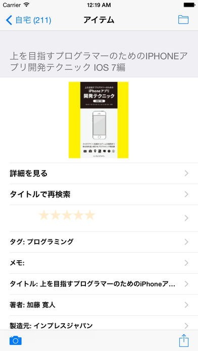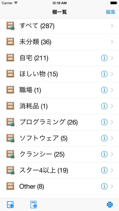 家にある本棚毎に収録している本を記録できる