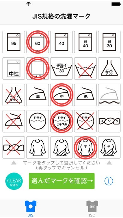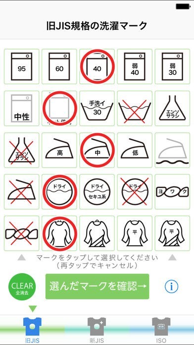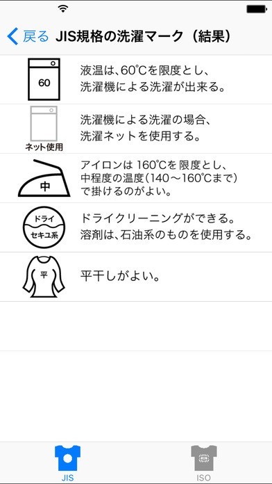 洗濯タグチェッカー “ ISO & JIS ”のスクリーンショット