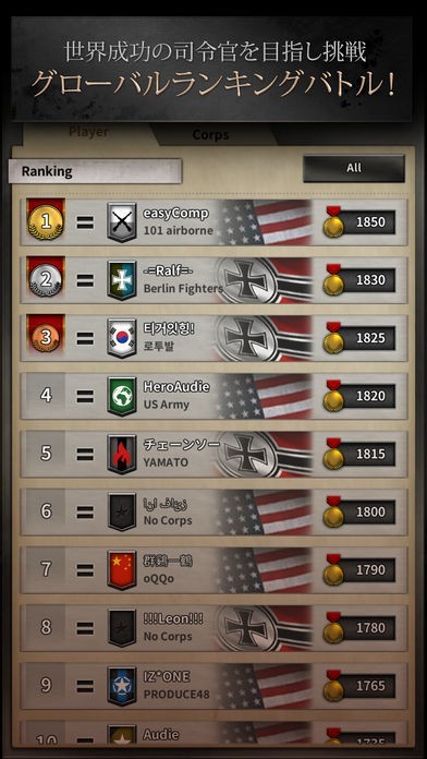 ● 戦いの勝敗によって、ランキングスコアを獲得または喪失します。世界最高の司令官の座を賭けた熾烈な戦いに、全世界のプレイヤーたちと一緒に参加してみましょう!