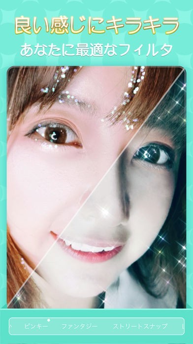 Shine - キラキラカメは撮影の前後から画面を加工できていつでも自分の好きなように写真の加工が可能になるというアプリです。自分に最適な光のフィルタを使いたいと思った時にいつでも使えるのがこれの良さです。