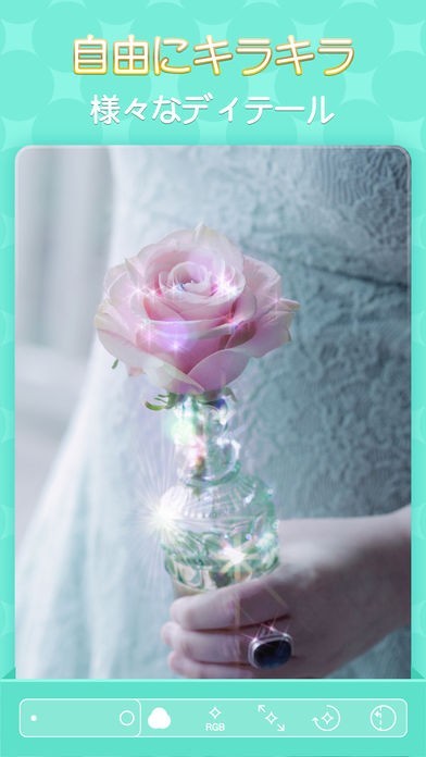よくある写真加工アプリとは違って見た目がただキラキラして見えるだけでなく実際に光の粒が点滅して光っているように見えるのでリアルタイムで光っているような演出をしたい時に使えて良いです。