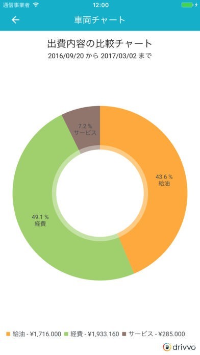 平均燃料チャートが表示出来るので、自動車の燃費を調べたい際に必見でした