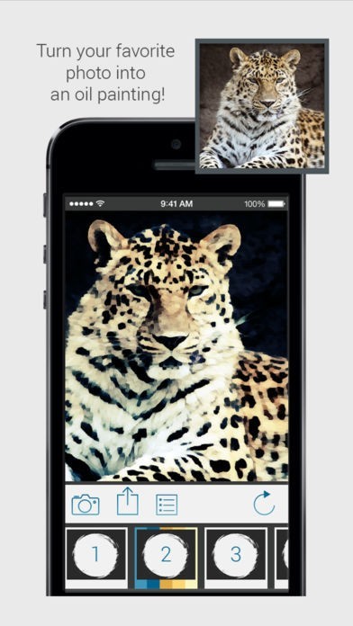 Simply select a photo from your photo library, or directly take a picture using in-app camera. And simply apply a filter to turn it into an oil painting.