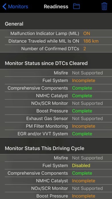 • Check emissions readiness values