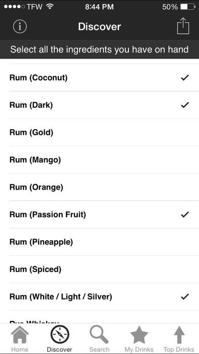 今ある材料を追加することで、その材料だけを使って作ることができるカクテルやショット、ノンアルコールカクテルのレシピを自動表示してくれるため、飲みたいときにすぐに飲めるカクテルが見つかります。