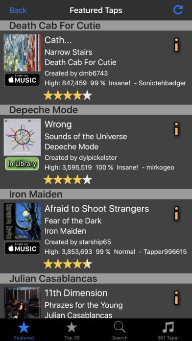 様々な楽曲を再生させる事が可能で、タップ操作でリズムを刻めるのが面白い