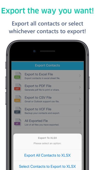 1. Export contacts to XLSX, PDF, CSV or VCF file format