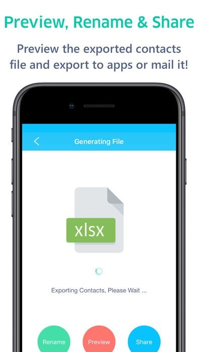 App Storeより引用Export All Contacts To Microsoft Excel (xlsx), PDF File, vCard (vcf), Outlook (csv), Gmail (vcf or csv) with just 2 taps! Export one by one or all contacts at once!