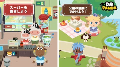 Dr. Pandaタウンを冒険してスーパーやレストラン等色んな場所で楽しめる