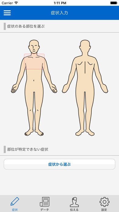 部位と症状を選ぶだけで伝えられる