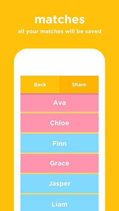 パートナーと一緒に使えば、マッチング機能で二人の好みに合った名前が分かる
