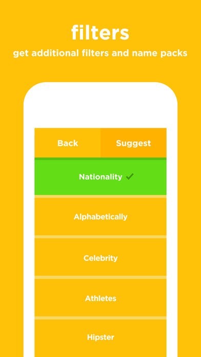 「BabyName」には非常に多くの名前が入っていますが「セレブ」や「アスリート」などでフィルターをかければ、自分が興味のあるカテゴリーの名前だけを表示させることができます。