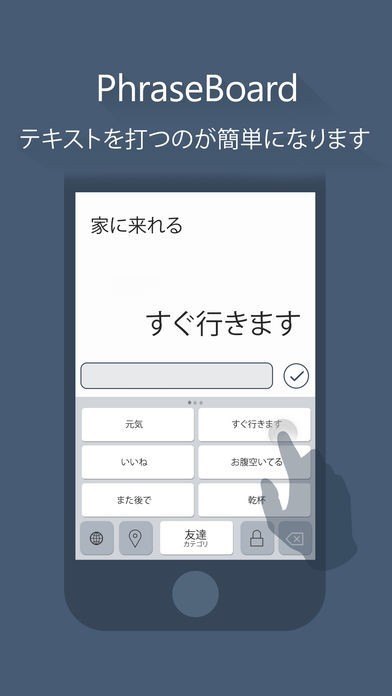注意: キーボードに自身の定型文を表示させるには、オープンアクセスを許可しなければなりません。設定 > キーボードへ行き、「Phraseboard」をクリックしてオンにしてください。