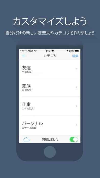よく使う定型文を作成して、カテゴリごとに並べてください。