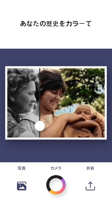 App Storeより引用SPECTRUMは白黒写真をワンクリックで自動的にカラー化してくれる唯一のアプリです。真っ先にダウンロードして、家族や友達をびっくりさせてみましょう!