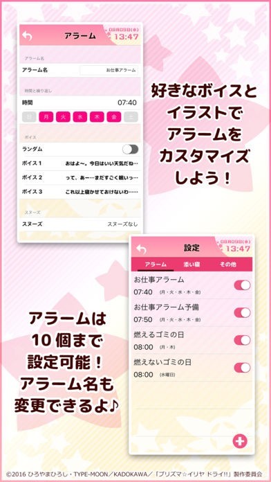 プリズマイリヤの声でアラームを設定することができる!