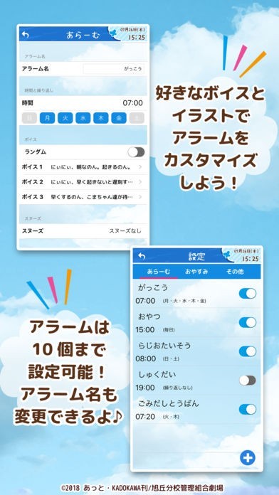 アラームをセットすることができるので、お気に入りのボイスをセットして、モーニングコールの代わりに好きな女の子の声で、快適でさわやかな目覚めを迎えることができます。
