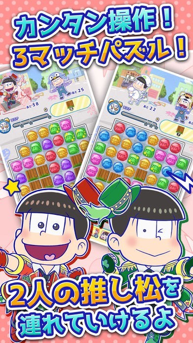 2人の推し松と一緒にカンタン操作の爽快パズルをクリアしていけば、完全新作ストーリーが進んでいきます!