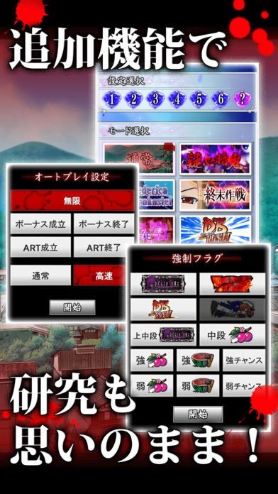 設定選択やオートプレイ、強制フラグ機能で思いのままの研究が可能