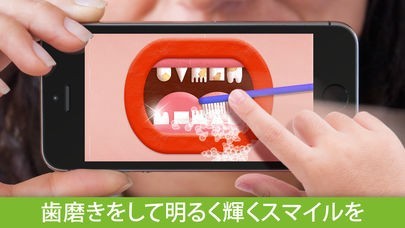 歯、牙、大牙などから成る歯の一式を自分で特別デザインして、物を噛み砕ける準備ができるよう形やサイズを調節してください。美味しいスナックをむしゃむしゃ食べて、新しい歯がどれだけ汚れるか見てみてください。そうしたら、汚れを全て磨き去って明るく輝くスマイルを! 自作のバーチャル歯列がケアしてくれたことに対してニコニコしながら歌で感謝します。次回歯医者さんを訪れたら、お子様は成長中の歯を自慢しながら見せてくれることでしょう!