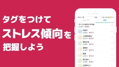 自分のストレスを手軽に測定できる便利アプリ「ストレススキャン」 アプリを起動したらバックカメラに指先を置くだけで、心身にかかっているストレスを測定することができます。 指先をフラッシュで照らすことにより、心拍数の読み取りが可能となっており、1から100までのストレス指数を教えてくれるのが特徴です。 タグ機能を搭載し、測定したストレス値はタグ付けによる管理な他、タグごとの平均ストレス値の算出も行えます。 また、カレンダーでは曜日ごとのストレス傾向をチェックできるようになっています。
