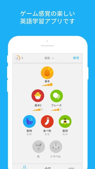 世界で一番人気の言語習得アプリです。英語をはじめ、フランス語、ドイツ語、スペイン語、ポルトガル語など20種類の言語レッスンが無料でダウンロードできます。一つのカテゴリーを段階に分けて少しづつ出題し、短時間自分のペースで無理なく単語が覚えられます。マイク機能を使って文章のスピーキングの採点も瞬時に対応してくれ、正しい発音ガイドでスピーキングの勉強もできます。34時間分の学習で大学一学期分の語学授業に匹敵するという効果の証明実績もあるDuolingoならではの学習法。言語レッスンは長続きしないから、と諦める前にDuolingoでチャレンジしてみましょう。