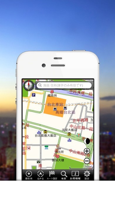 台湾全国の詳細な地図はもちろん、高精度のナビケーション機能もついております。