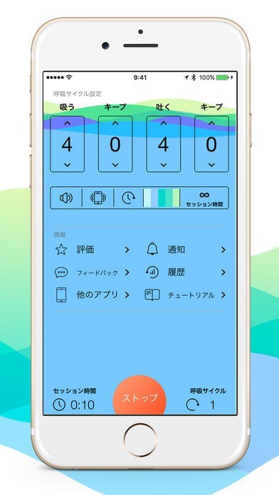 セッションタイムと呼吸のリズムはあなた好みに設定可能
