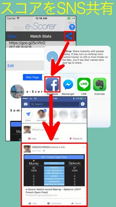 FacebookやLINEなど多くの人々が使用しているSNSに試合結果を投稿することができます。どちらがどれくらいの点差で勝利したのかが一目でわかるようになります。