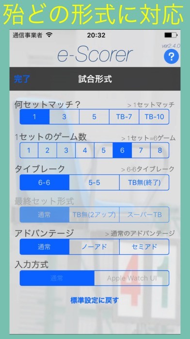 ゲーム数やセット数を細かく設定できる