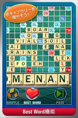 対CPUの一人プレイか、Pass 'N' PlayやWifiで友達と対戦も可能。誰とどうプレイしても、SCRABBLE™はまさにF-U-Nです!