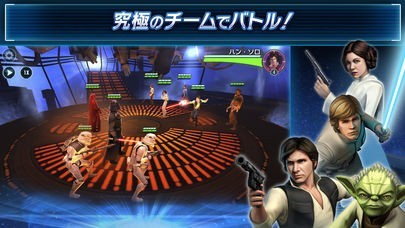 時代に関係なく好きなキャラクターを選んでチームを編成することができるので、ルークとアナキンを一緒に戦わせるなど原作にはない組み合わせを実現させてバトル可能です。